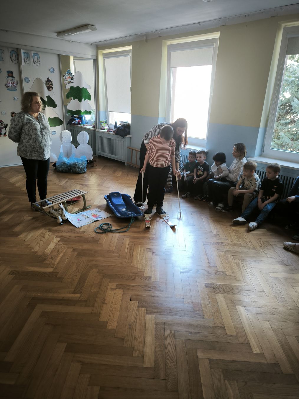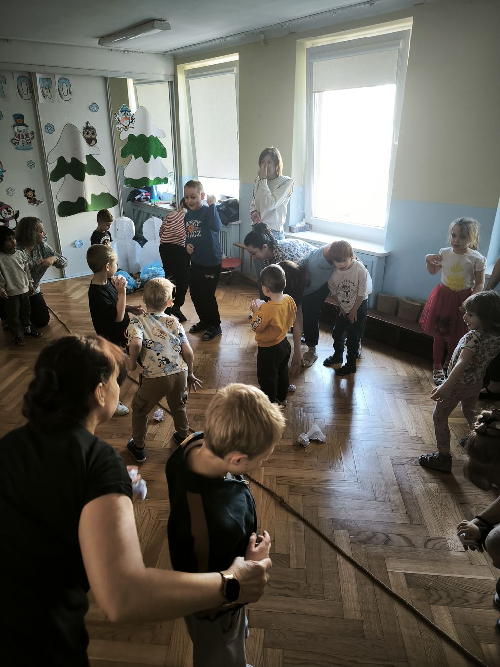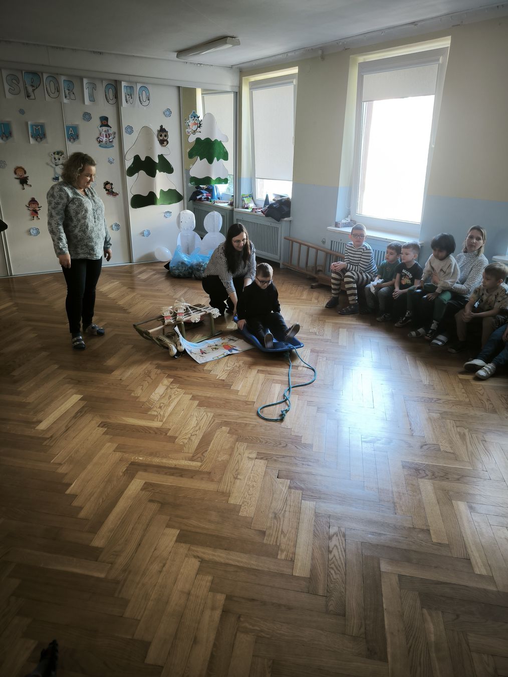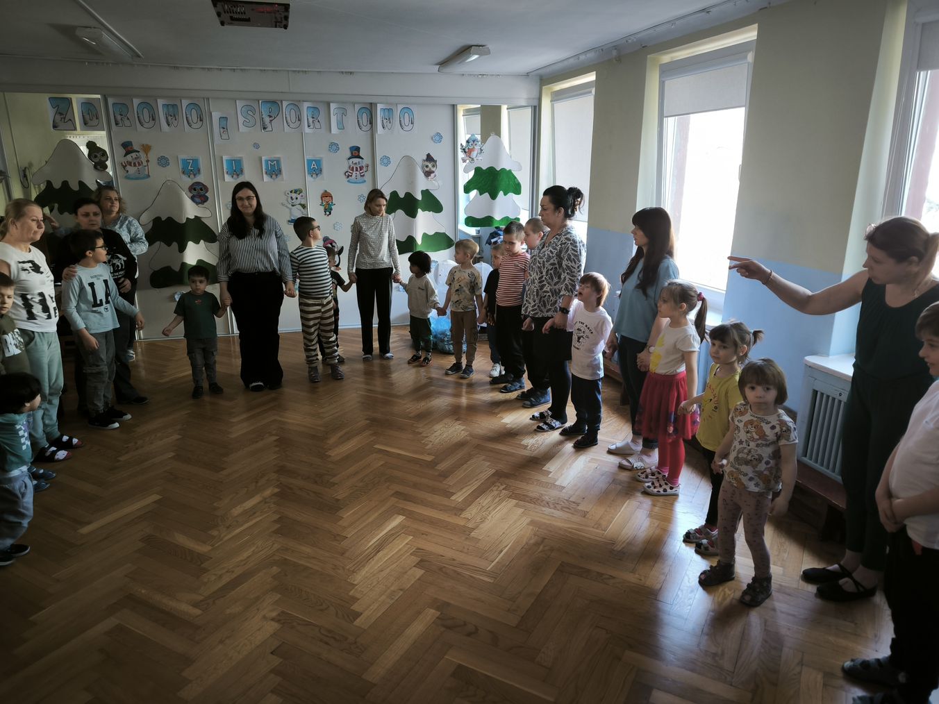 W środę 4 marca odbyła się w przedszkolu zabawa pt. "Zdrowo i sportowo - zima". Dzieci chętnie uczestniczyły w zabawach sprawnościowych oraz tańczyły w kole.